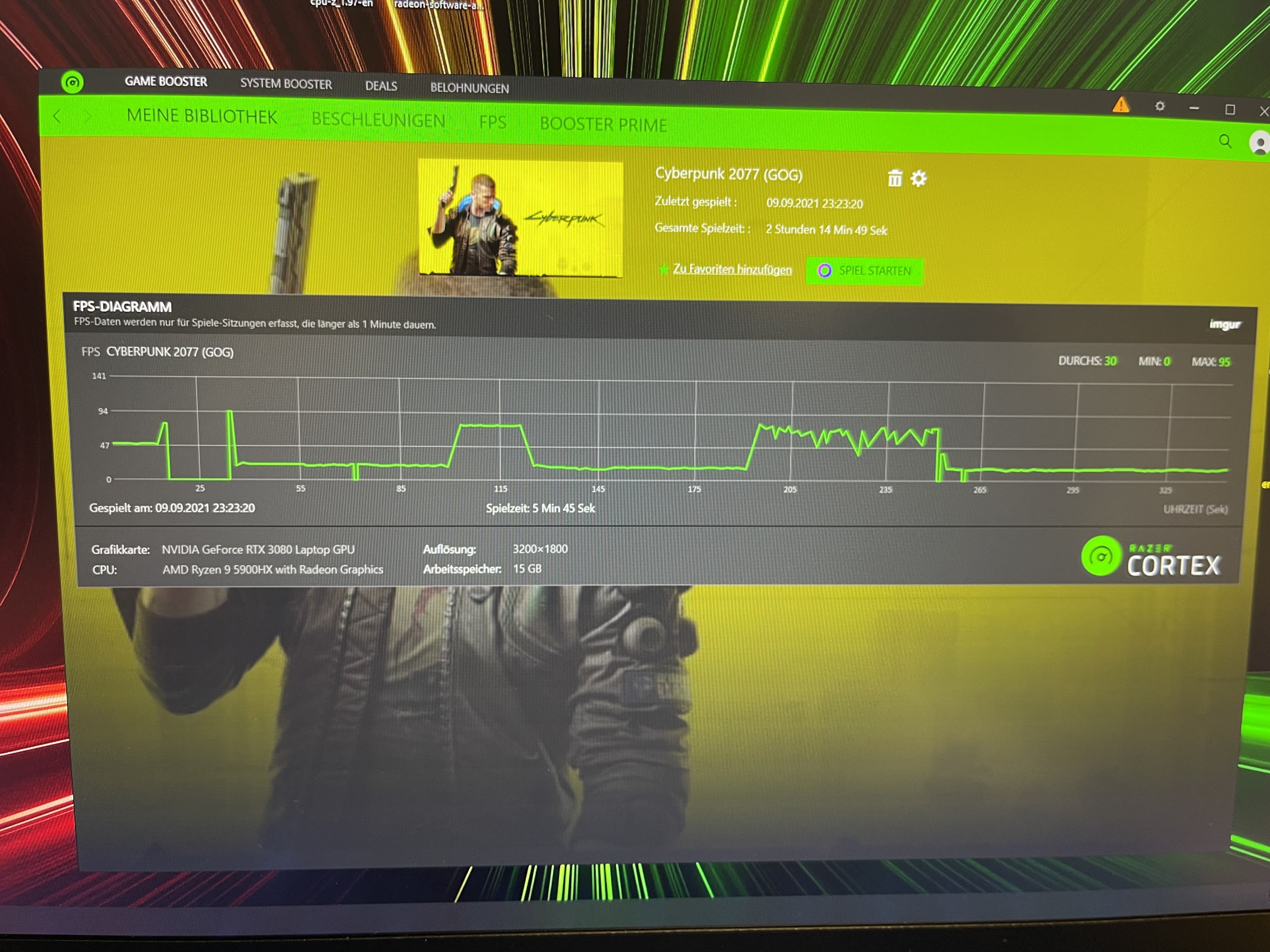über 30FPS. Also, da stimmt was nicht mit deinen 12fps. Ich tippe auf einen USB-C -> DP Konverter der da am Start ist :-)