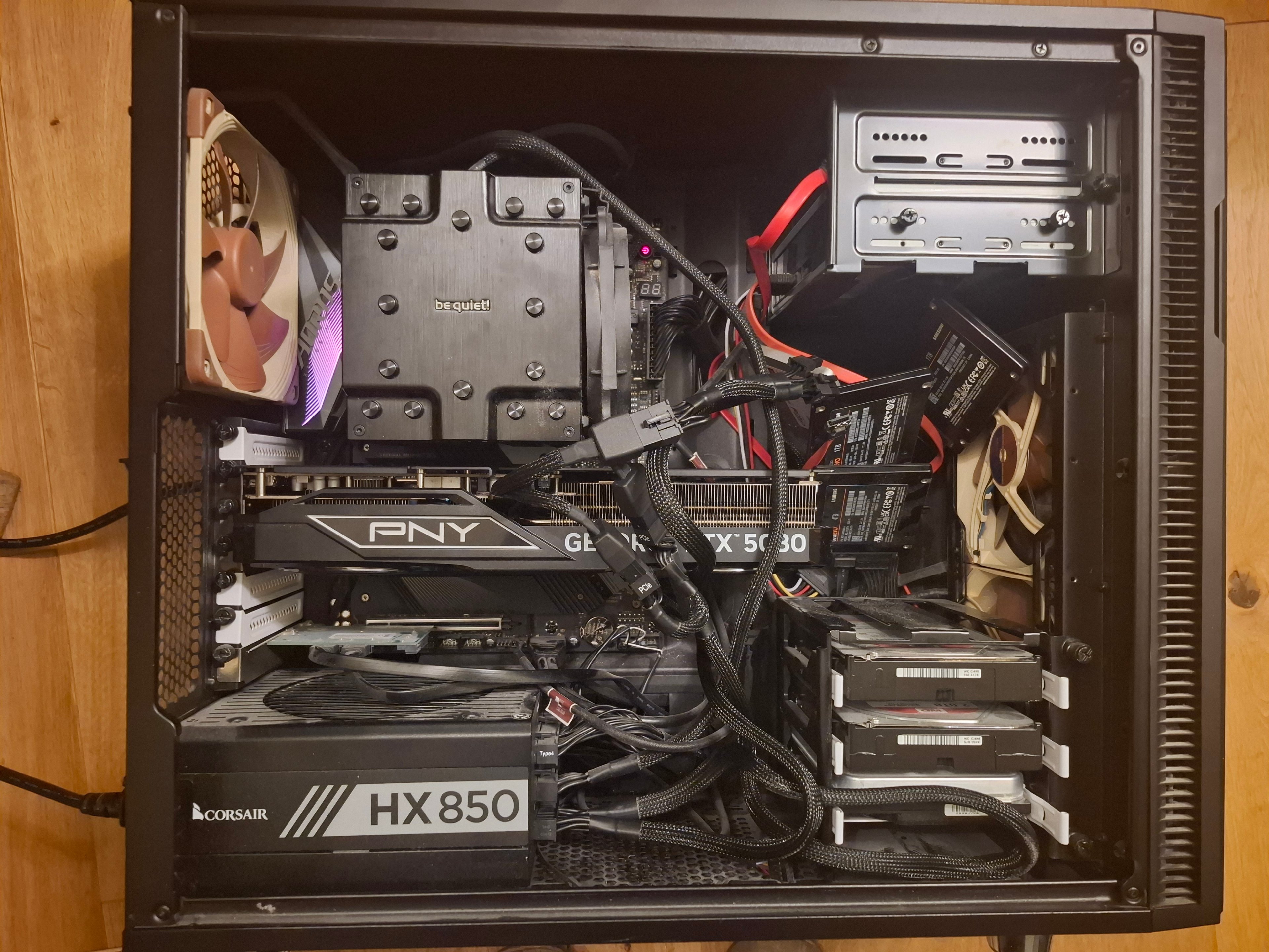 Unten steckt ne PCIe Erweiterungskarte für mehr SATA Anschlüsse, die könnte ich mittlerweile thereotisch sogar wegrationalisieren weil eine HDD weggefallen ist beim Umbau für die Graka.