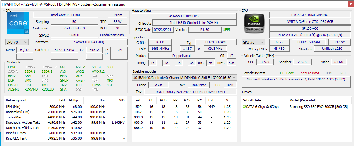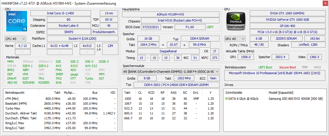 - Grafikkarte: EVGA GeForce GTX 1060 (alt)