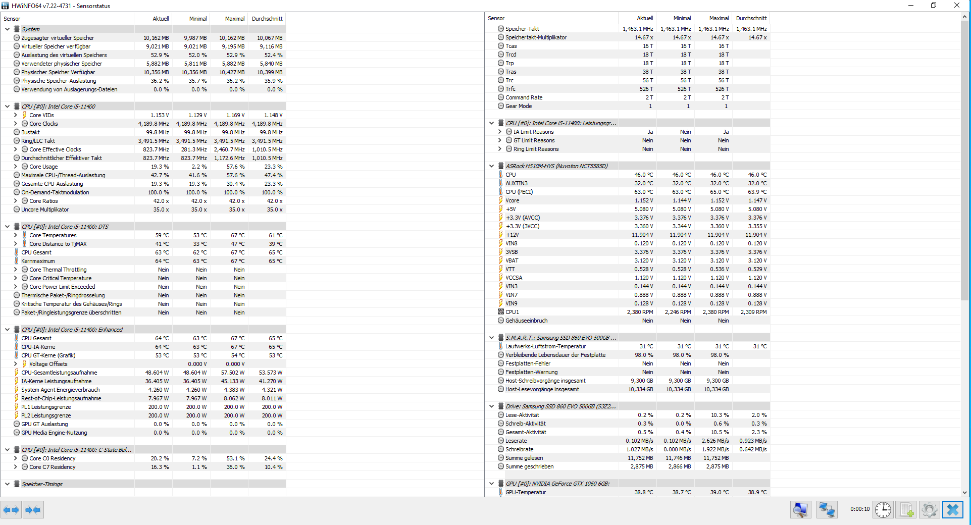 Der Prozessortakt startete bei 1886, ging in langen Stufen über das game auf 1823 runter.
