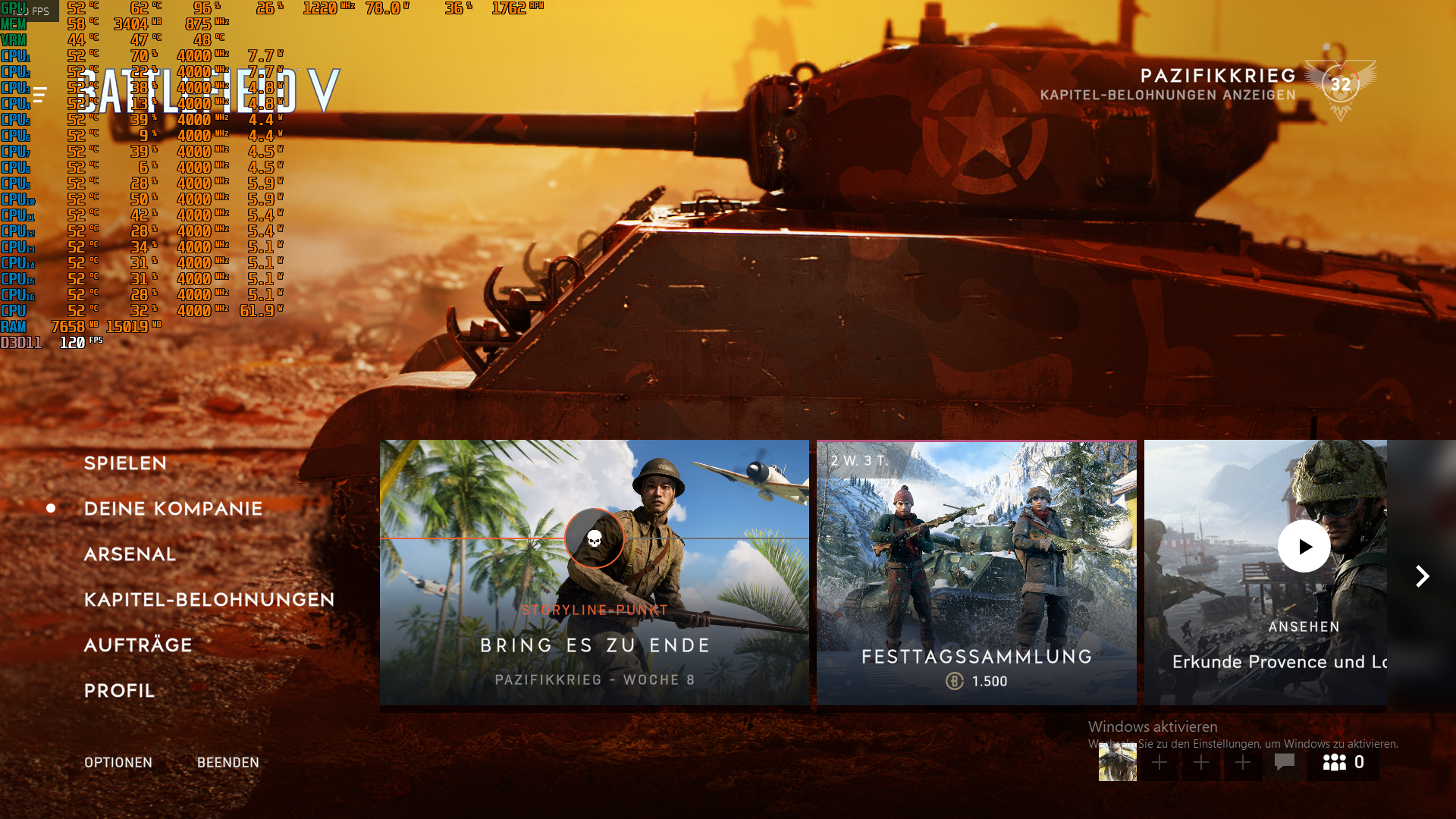Bild BF5: im Ladebildschirm (FPS bis zum Limiter).