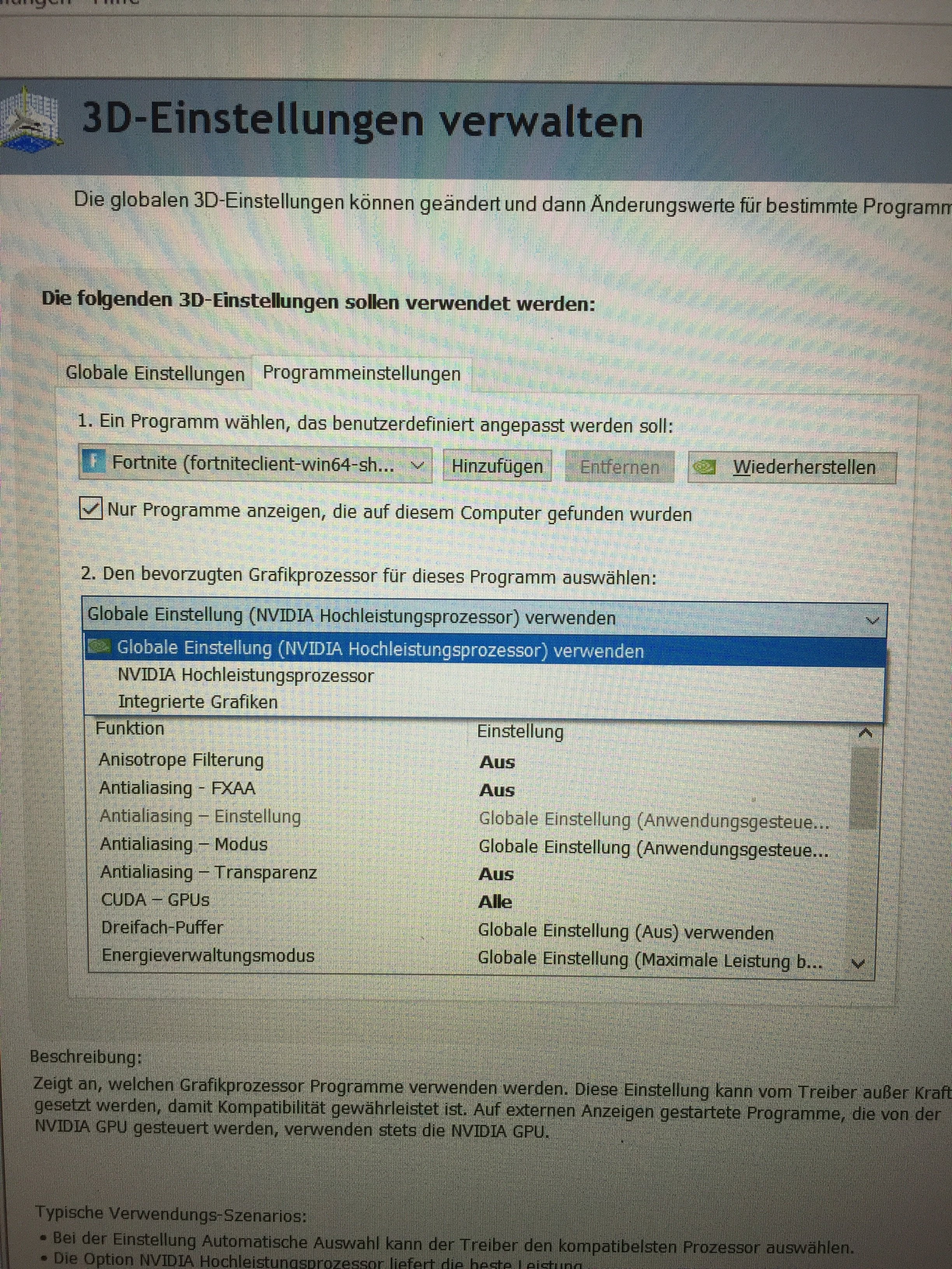 Wo kann man bei nVidia im Treiber einstellen, dass Fortnite auch die 1050Ti nutzt?