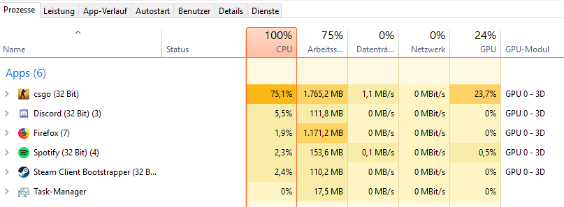 Ich bekomme in z. B. Cs:Go / Minecraft 30 - 40 FPS mit nur 20 % GPU Auslastung und dabei 100% CPU Auslastung.