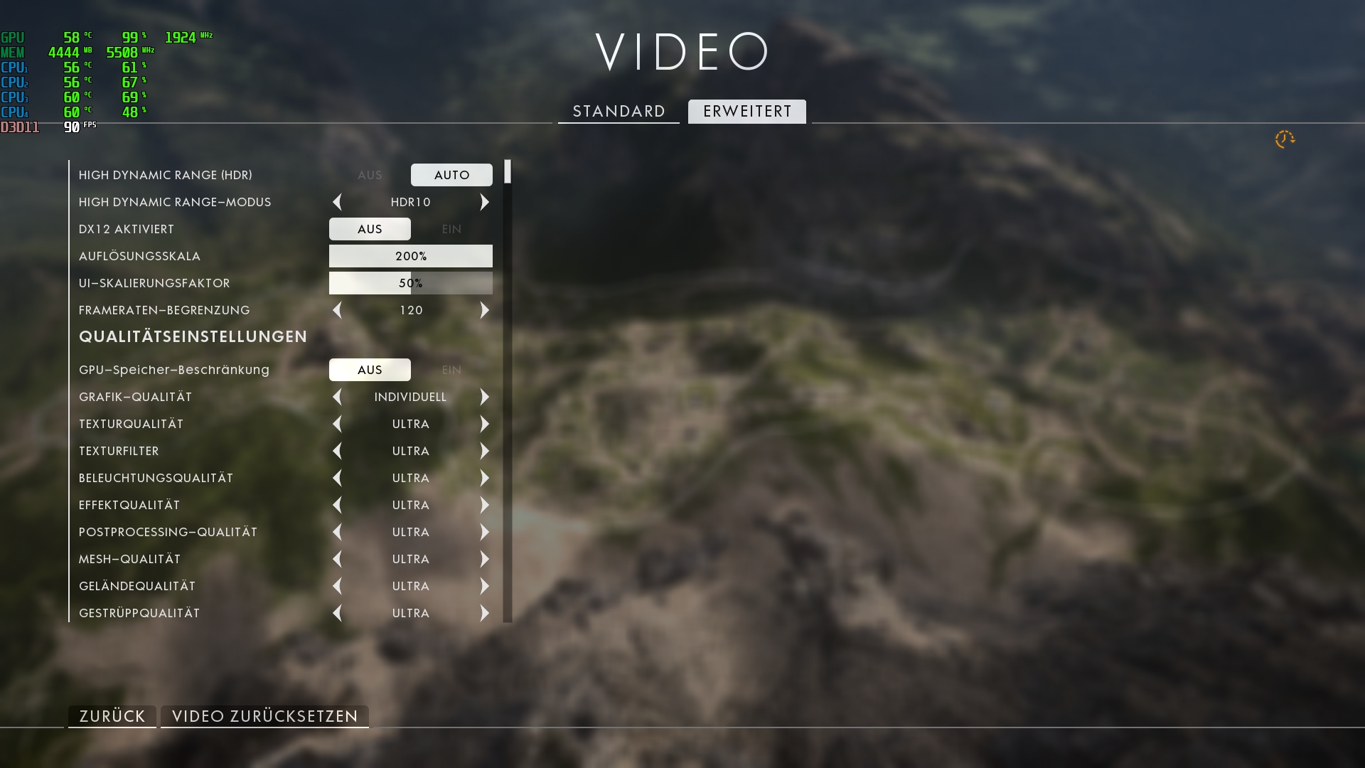 ich habe das Problem bei BF1 das ich wenn alles auf Ultra steht (siehe Anhang) ich nur auf 90 fps komme.