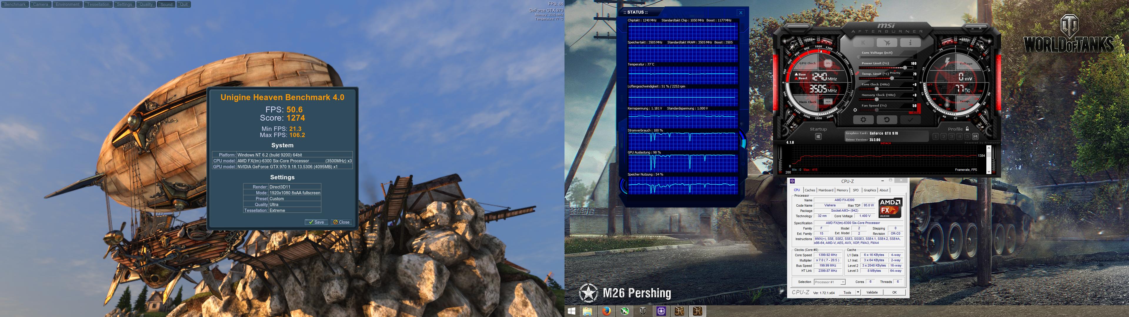 Also grad heaven Benchmark gemacht Screen unten. Alles supi 99% GPU Auslastung, CPU hat auch keine Probleme gemacht aber warum dann ausgerechnet in WOT?
