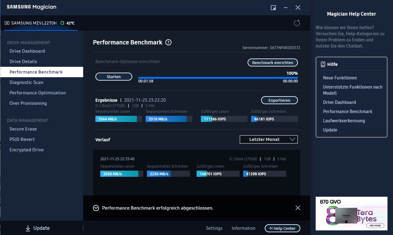 https://www.touslesdrivers.com/index.php?v_page=3&v_code=8208Wiederum steht Samsung dieses Update als ISO-Image zur Verwendung mit einem USB-Stick bereits. Die Firmware 4B2QGXA7 scheint zum Zeitpunkt des Schreibens dieser Zeilen noch nicht in der Magician-Wartungsanwendung gehört zu sein.