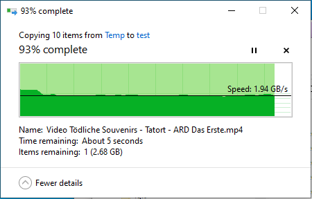 Ich kopierte heute morgen eine große Datei 70gb