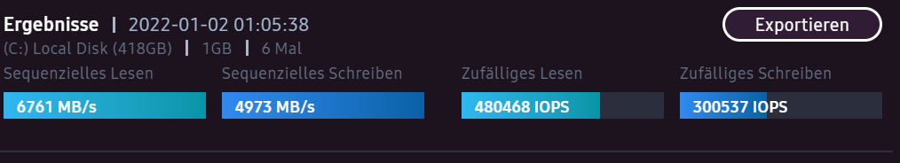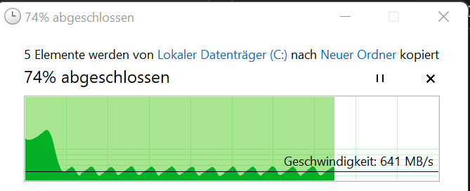 Hier sind 50GB (über 10 Dateien, aber das heißt nichts) vom 980 PRO auf sich selbst kopiert: