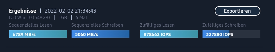 Ich habe mir vor 1 Woche beim Media Markt die Samsung 980 Pro 500gb für 89€ gegönnt, jetzt habe ich mal Samsung Magican installiert, und musste feststellen das die Schreibrate miserabel ist war.