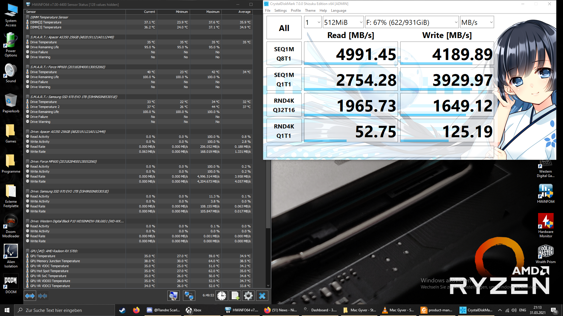 Nein hat sie nicht. Sagenhafte 5000 Megabyte pro Sekunde - dauerhaft beim LesenWeltalsWille schrieb:Die MP600 hat wie alle vergleichbaren 3rd Party SSD mit Phison-E16 ebenfalls Probleme mit der Schreibleistung nach längerer Nutzung. Auch wenn eventuell nicht jeder betroffen ist, gibt es im Corsair-Forum viele Fallberichte dazu.