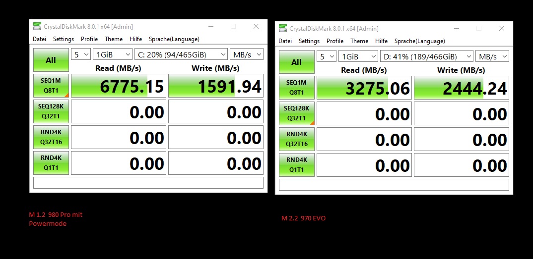 PCI E Protokoll: Samsung 980Pro: NVM Express 1.3 WD Black SN850: NVM Express 1.4 🤷♀️