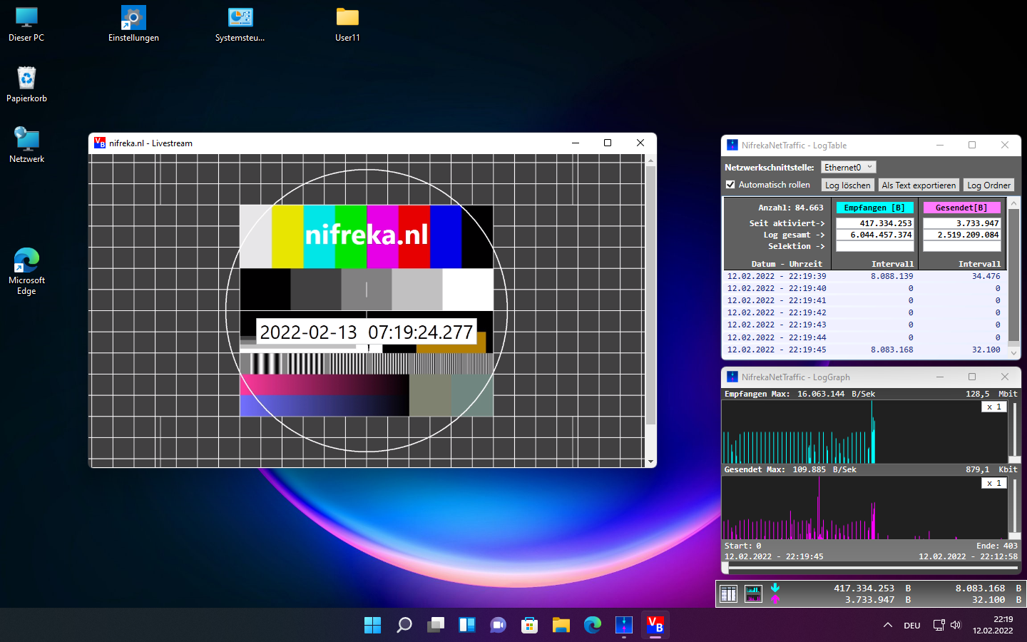 NifrekaNetTraffic ist ein einfaches WPF-Desktop Programm für Windows 10 und Windows 11 und zeigt Informationen über den Datenverkehr der aktuellen Netzwerkschnittstelle in kompakter, tabellarischer und grafischer Form an.