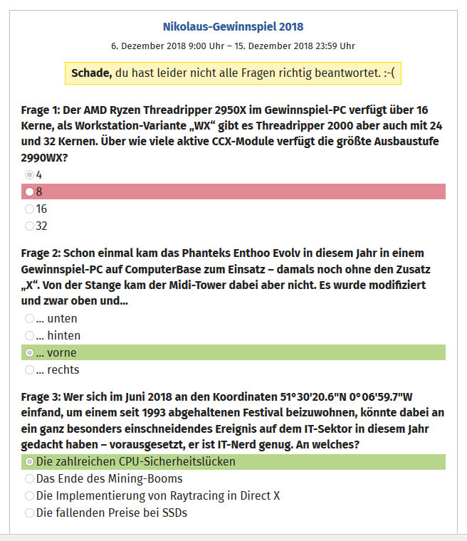 Mich würde nur interessieren ob ich die Fragen wenigstens richtig beantwortet habe und nur aus Pech nicht gewonnen habe.