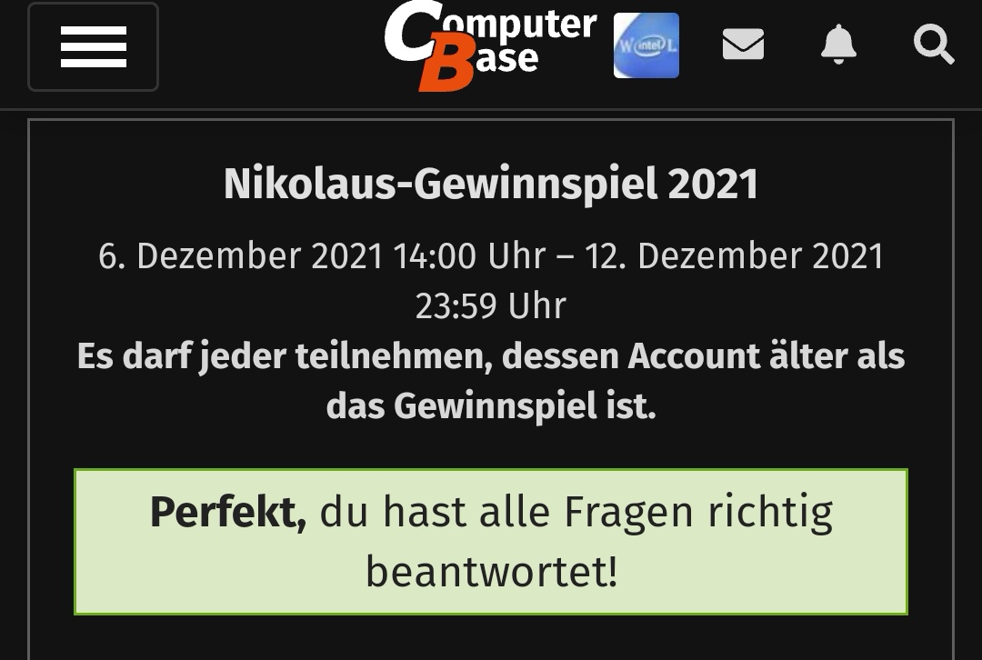 Hast du etwa nicht teilgenommen oder auch falsche Fragen gehabt?mace1978 schrieb:Verpasst. Dieses Jahr wird es wohl nichts.