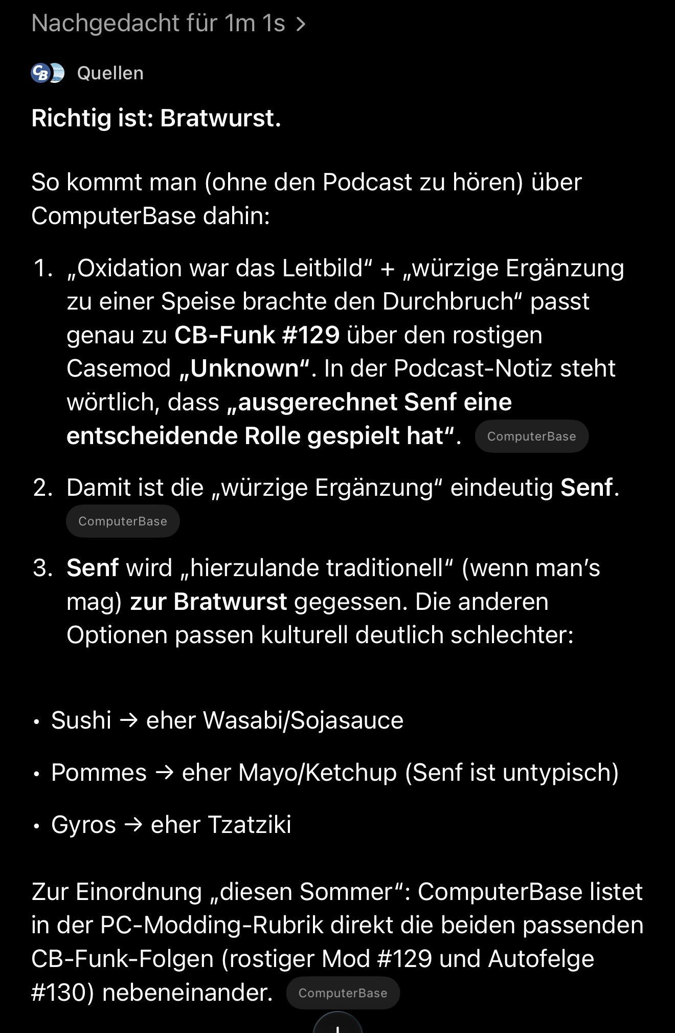 Das hier für jede Frage:ComputerJunge schrieb:Postest Du Deine Pre-/Post Prompt-Ergänzungen hier?