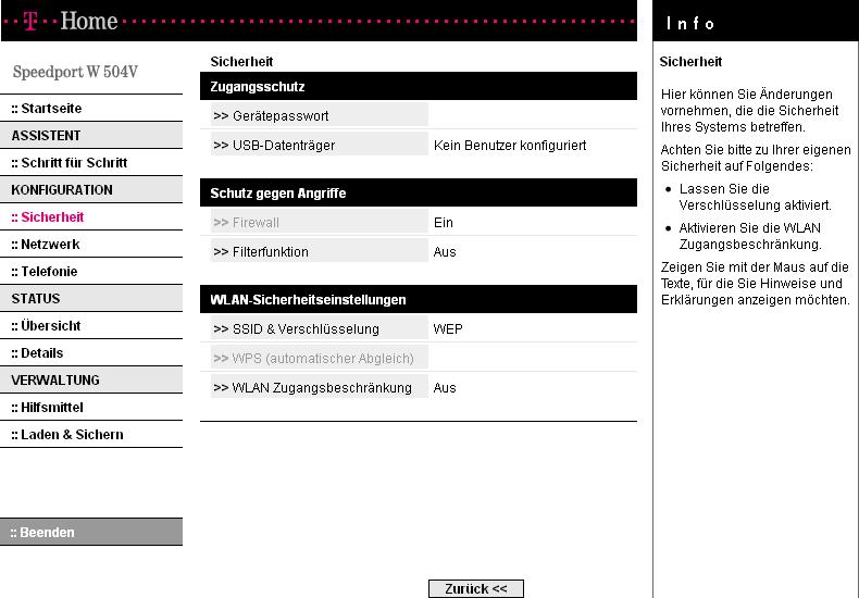 Inzwischen hab ich einen Speedport W504v. Ich hab in den Sicherungseinstellungen bereits meine Verschlüsselung auf WEP umgestellt,da der DS ja nur mit dieser Verschlüsselung kompatibel ist.