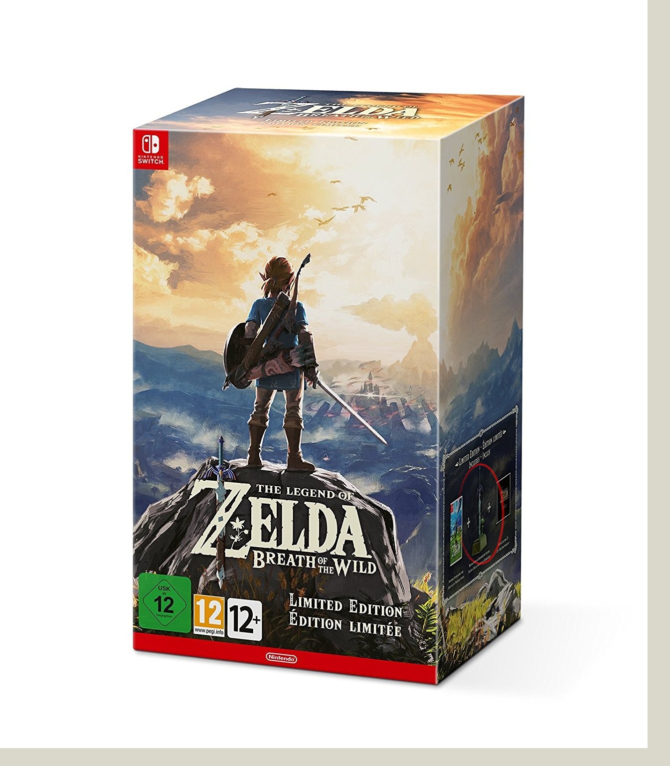 Die Special Edition kommt neben dem Spiel zusätzlich mit einer Sheikah-Slate-Tragetasche, einer Shiekah-Slate-Münze, einer Karte von Hyrule und dem Soundtrack auf CD. Die Masters Edition bietet dem Namen entsprechend zusätzlich noch eine Miniatur-Replika des Master-Schwerts