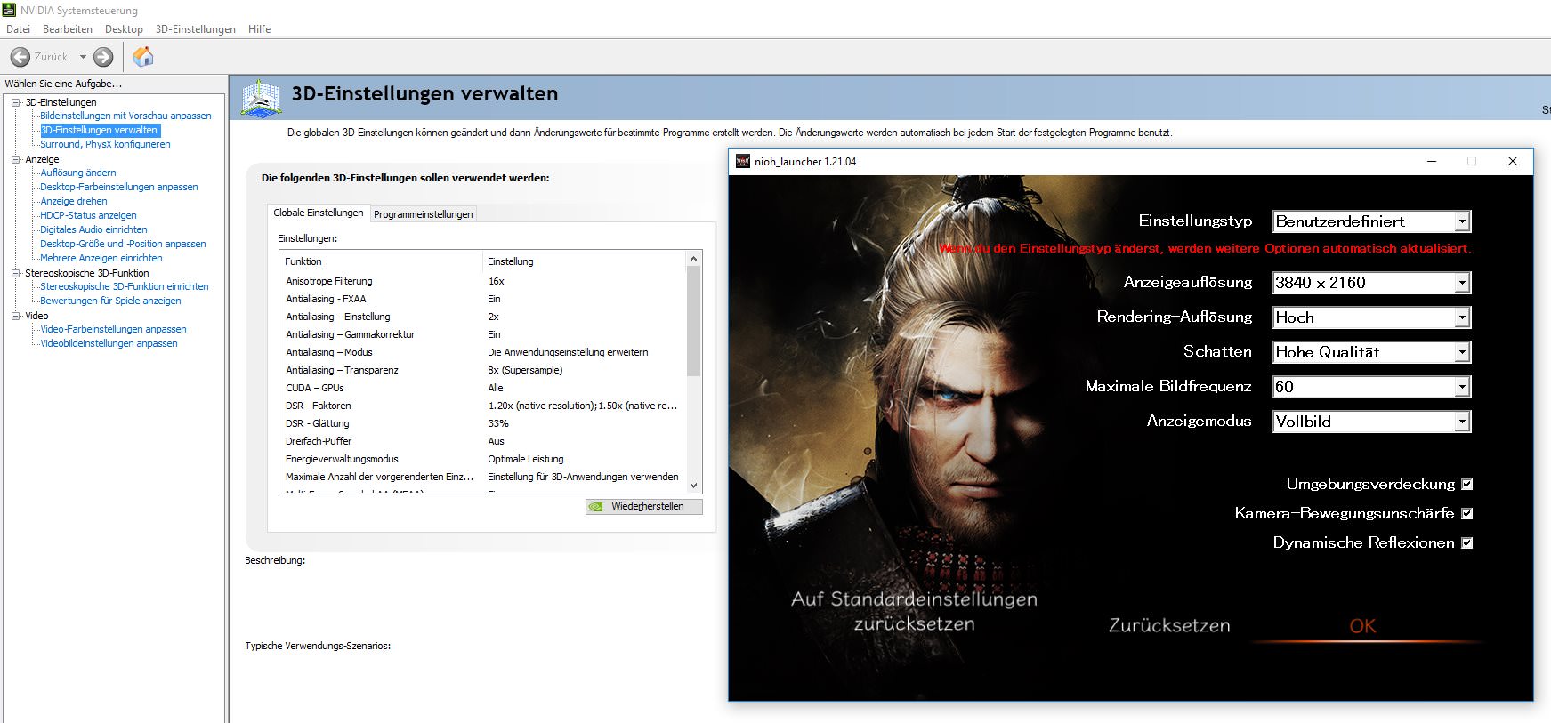 Also ih habe mir die Complete Edition von Nioh auf Steam gehollt,aber irgendwie hat das Spiel eine total abartig miese Kantenglättung.Nichtmal mit DSR auf 4K konnte ich wirklich etwas verbessern und dem Supersampling vom Nvidia treiber auch nicht,das steht alles auf Max und dennoch hat das Spiel total eckelige Kanten.
