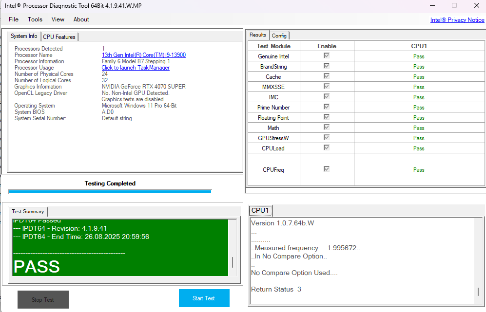 nur die interne Grafik der CPU genutzt ! ( die mitverbaute INNO3D 4070 Super wird aktuell noch nicht benutzt )