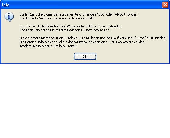 - Mit nLite diesen Ordner auswählen, danach zeigt es mir meine XP Version an