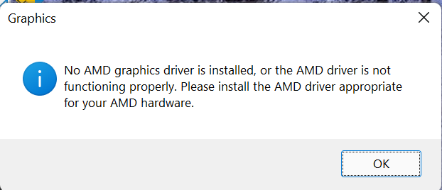 wenn ich meinen Rechner hochfahre kommt die Meldung, dass kein amd graphics driver installiert ist.