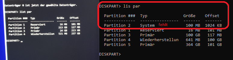 Dann habe ich erstmal BIOS geöffnet und unter BOOT ist sowohl für Legacy, als auch UEFI keine Platte zu sehen.