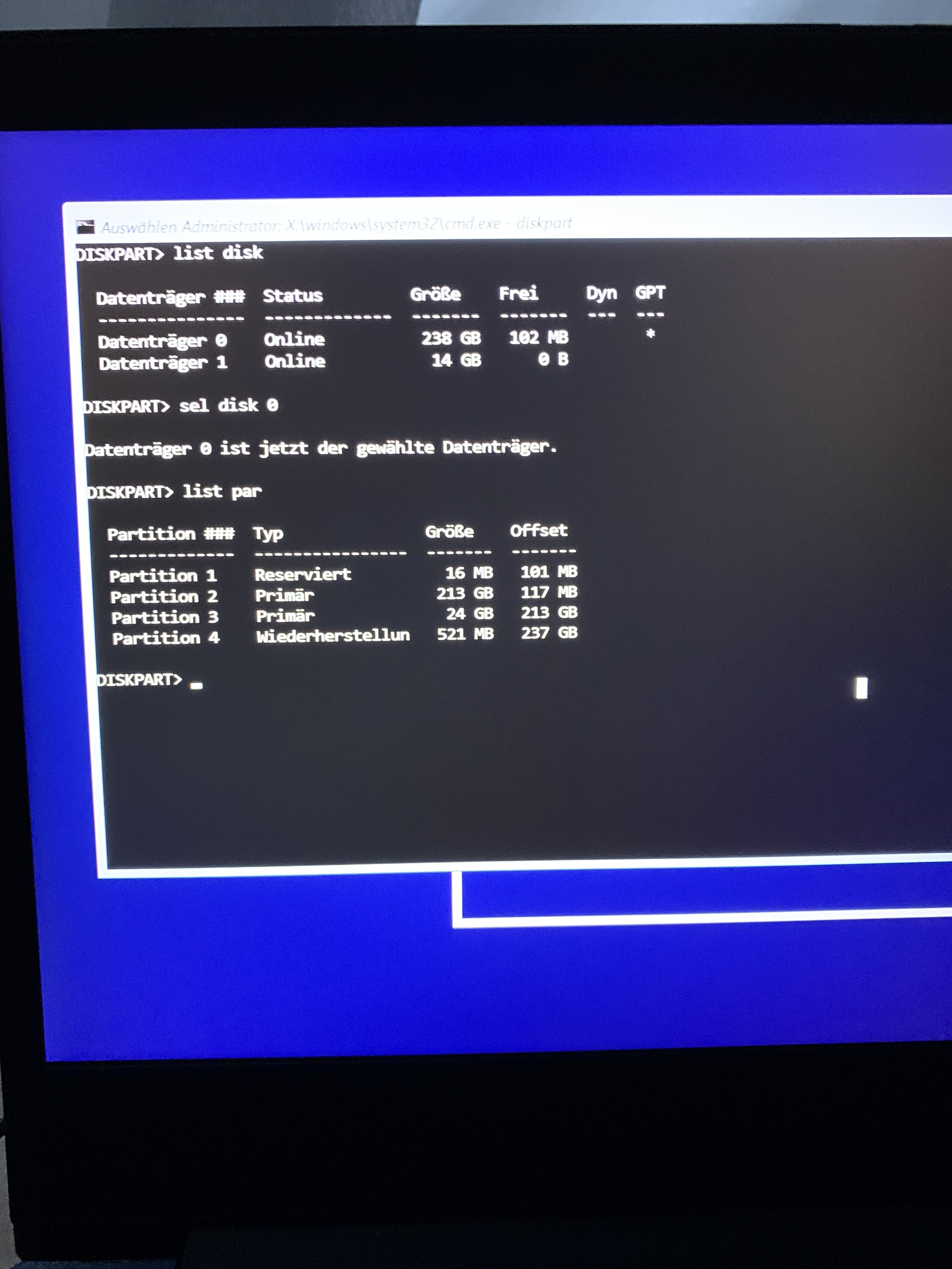 Jetzt habe ich auf einen Stick windows10 drauf gepackt un angesteckt. Über die Tastenkombination shft + F10 (dann Notepad öffnen) konnte ich sehen, dass meine Daten und Dateien aufjedenfall noch drauf sind.