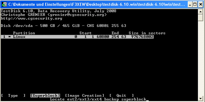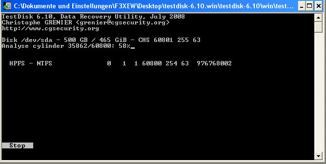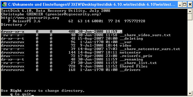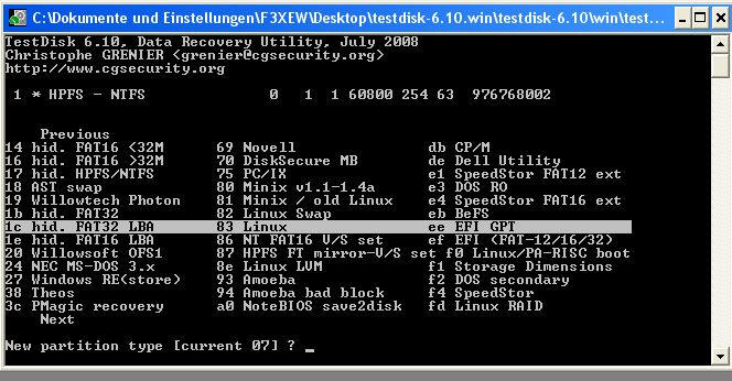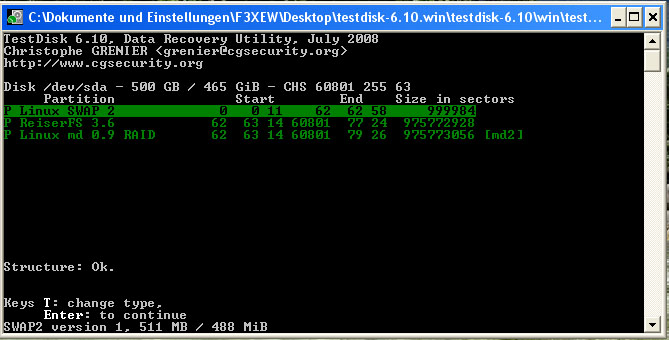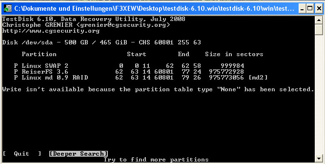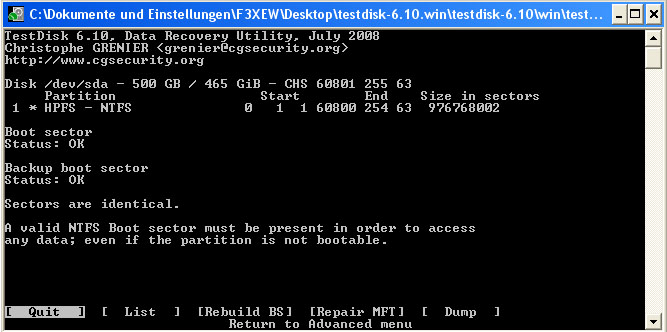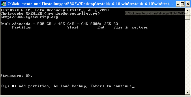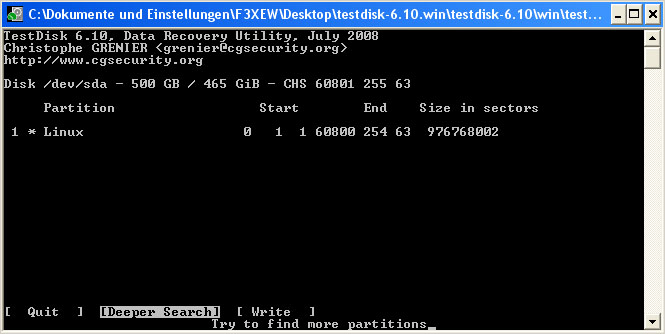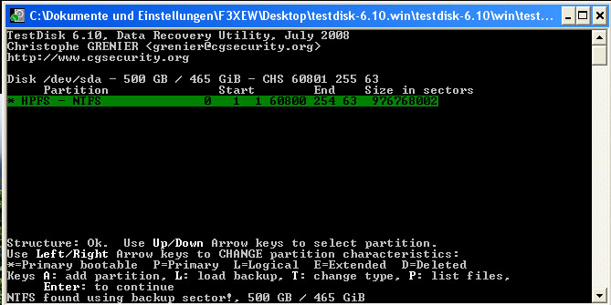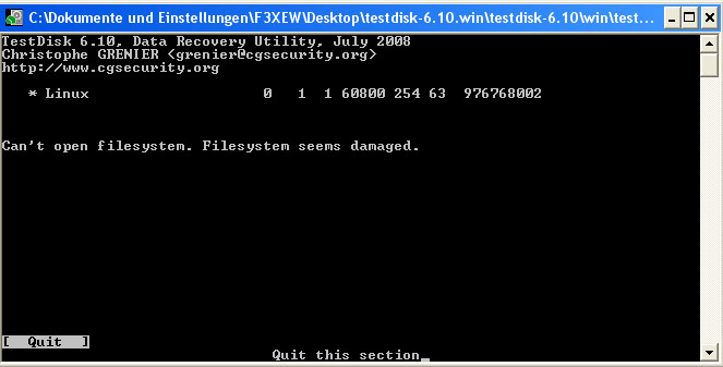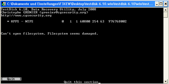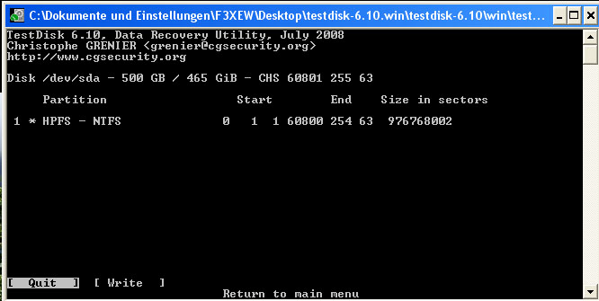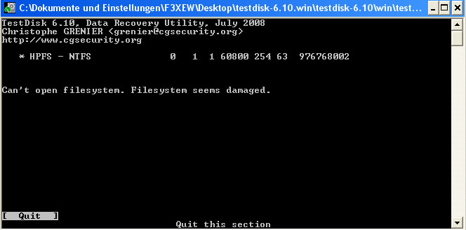 nun kann ich zwar meine Festplatte noch sehen unter testdisk 6.10