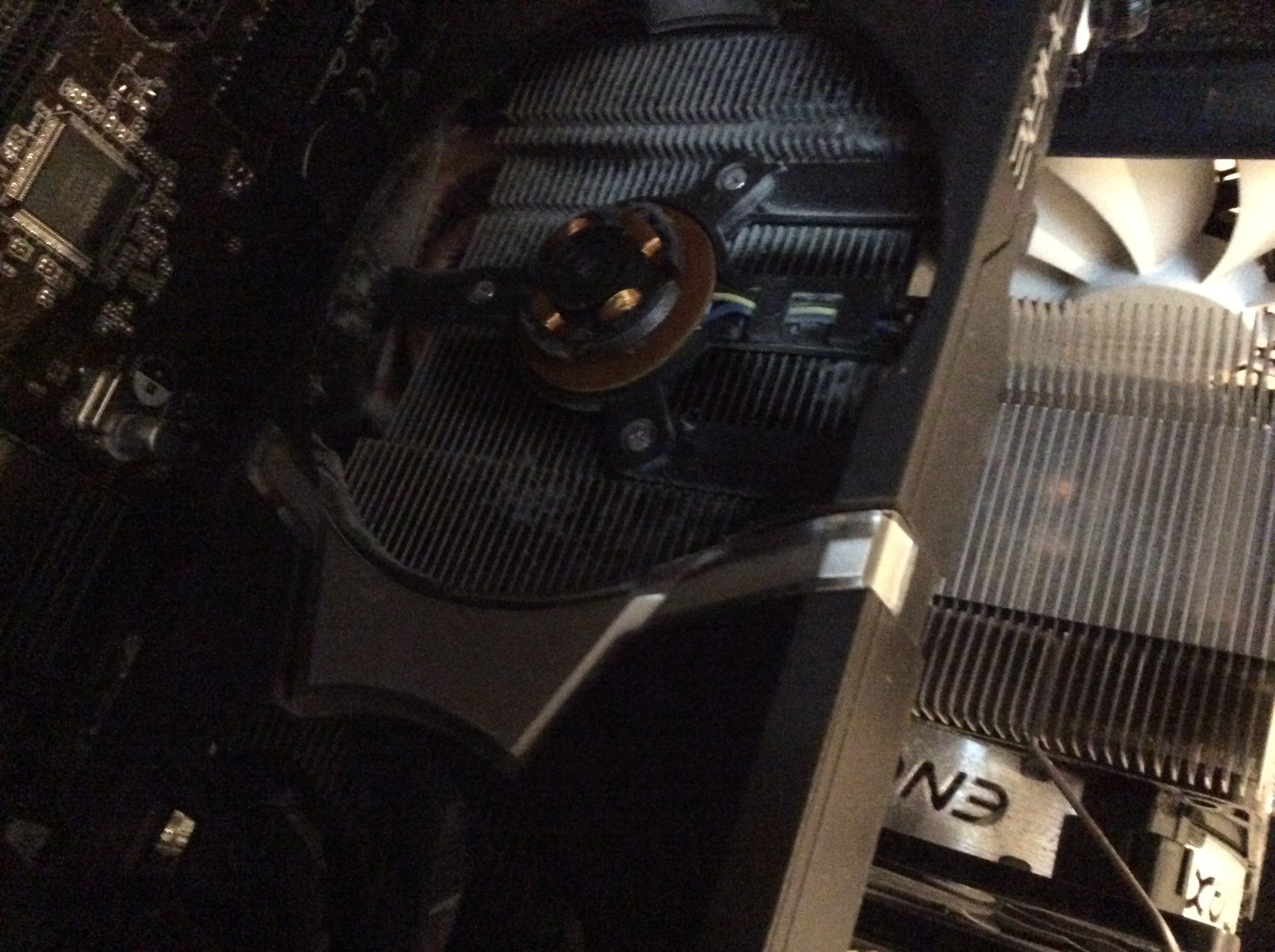 Vor zwei Jahren hat meine Grafikkarte angefangen zu rattern und vor einem Jahr fiel einer der beiden Grafikkartenlüfter komplett ab. Habs nicht geschafft den wieder aufzusetzen. Davor und seitdem öfters stürzt mein PC bei Grafikhungrigen Spielen ab, auf dem Bildschirm sind vertikale Linien mit einem leicht grünen/braunen Hintergrund, der Ton geht noch zwei Sekunden und dann geht auch der mit einem unangenehmen Sound aus.