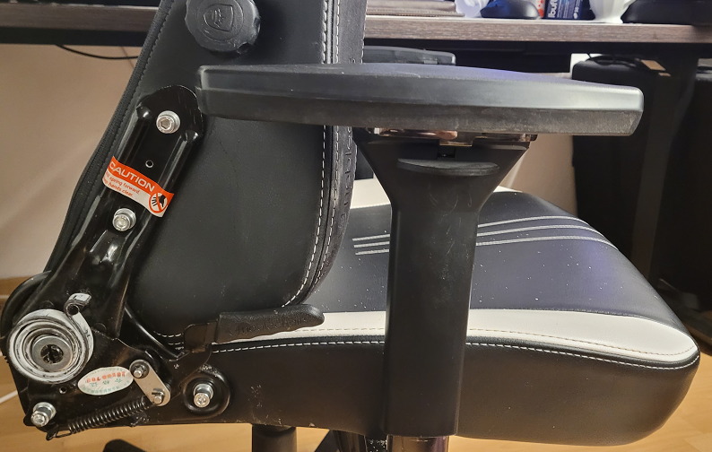 Ebenfalls defekt aber weniger ärgerlich, ist eine Armlehne, welche sich regelmäßig zur Seite wegdreht und verhakt, damit kann ich im Gegensatz zum Defekt an der Rückenlehne aber noch leben.