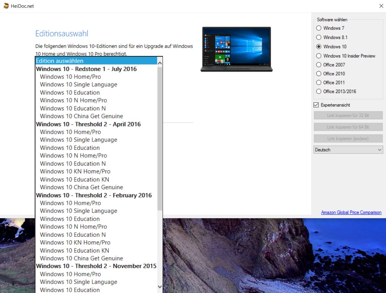 Hiermit kannst du alle Versionen von Windows 10 herunterladen.