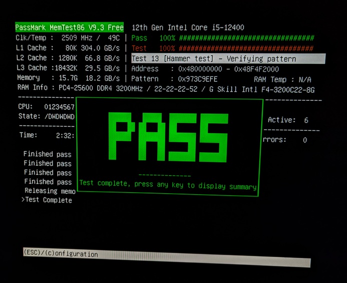 Das System läuft einwandfrei, die Temperaturen des Intel i5-12400 sind auch unter Volllast sehr niedrig.