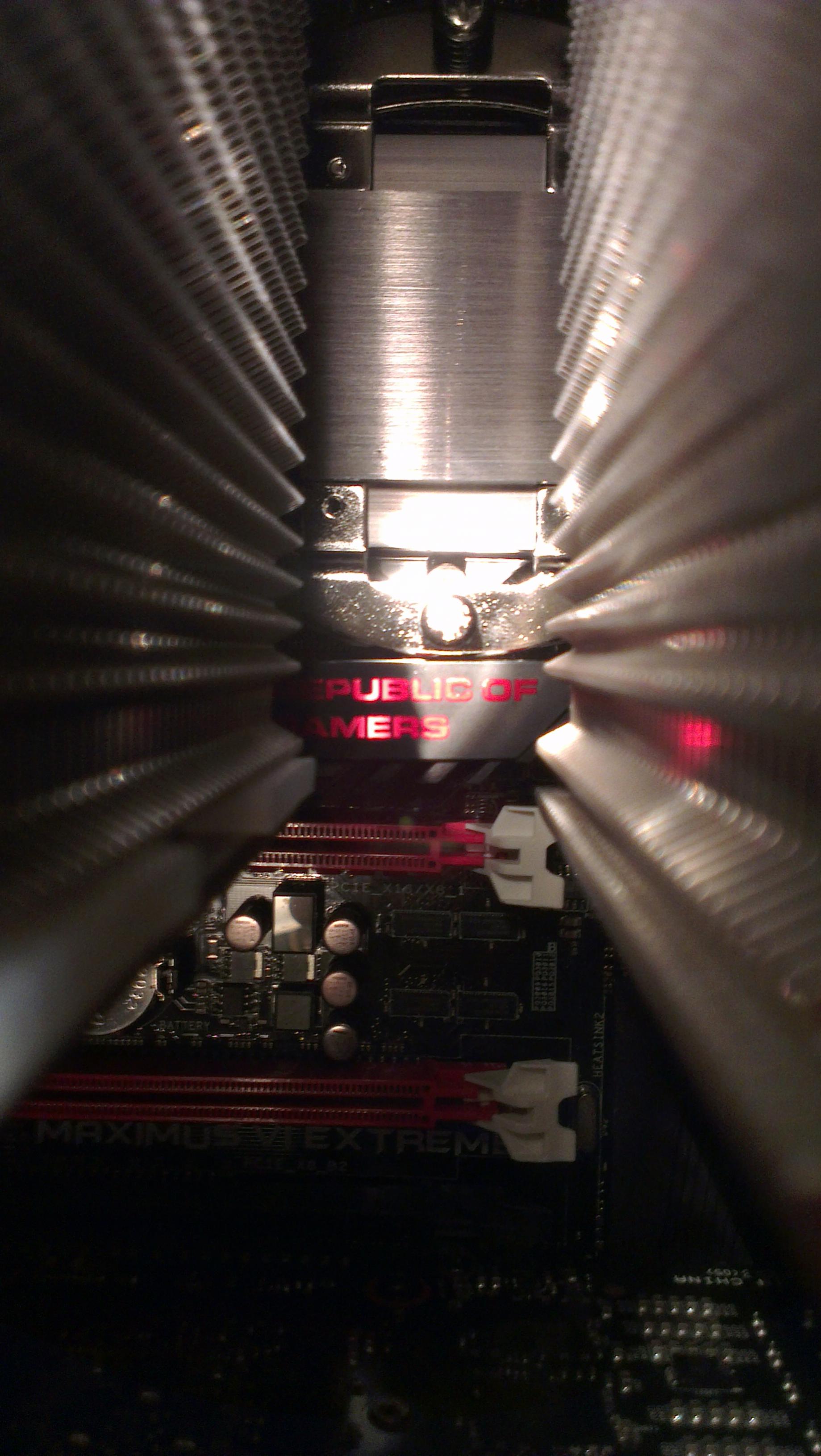 Auf der Homepage von Noctua stand jedoch nichts darüber, das der Kühler nicht Kompatibel ist. Es hieß nur das die Lüfter-bügel eventuell mit der Grafikkarte im obersten PCI- Slot kollidieren könnten. Das Montage Kit ist das richtige und der Kühler passt auch senkrecht aufs Brett drauf jedoch nicht waagrecht. In einem Test von PCPeper (http://www.pcper.com/reviews/Motherboards/ASUS-ROG-Maximus-VI-Extreme-Motherboard-Review/Motherboard-Layout) sieht man den D14 auch und er passt sogar waagrecht aufs Board. http://cdn.pcper.com/files/review/20...ooler-side.jpg