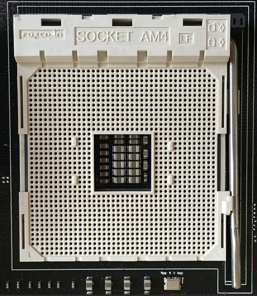 A lot has been said about the shape of the CPU lid and those cutouts are making room for capacitors, surface mounted capacitors, that would have been on the underside of the CPU in a PGA equivalent part but you need all the space you can get on the bottom of the chip so we moved things up top and made those cutouts and that allowed us to keep the same package size as AM4.