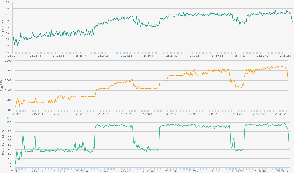 (Der unterste Verlauf ist die CPU Auslastung)