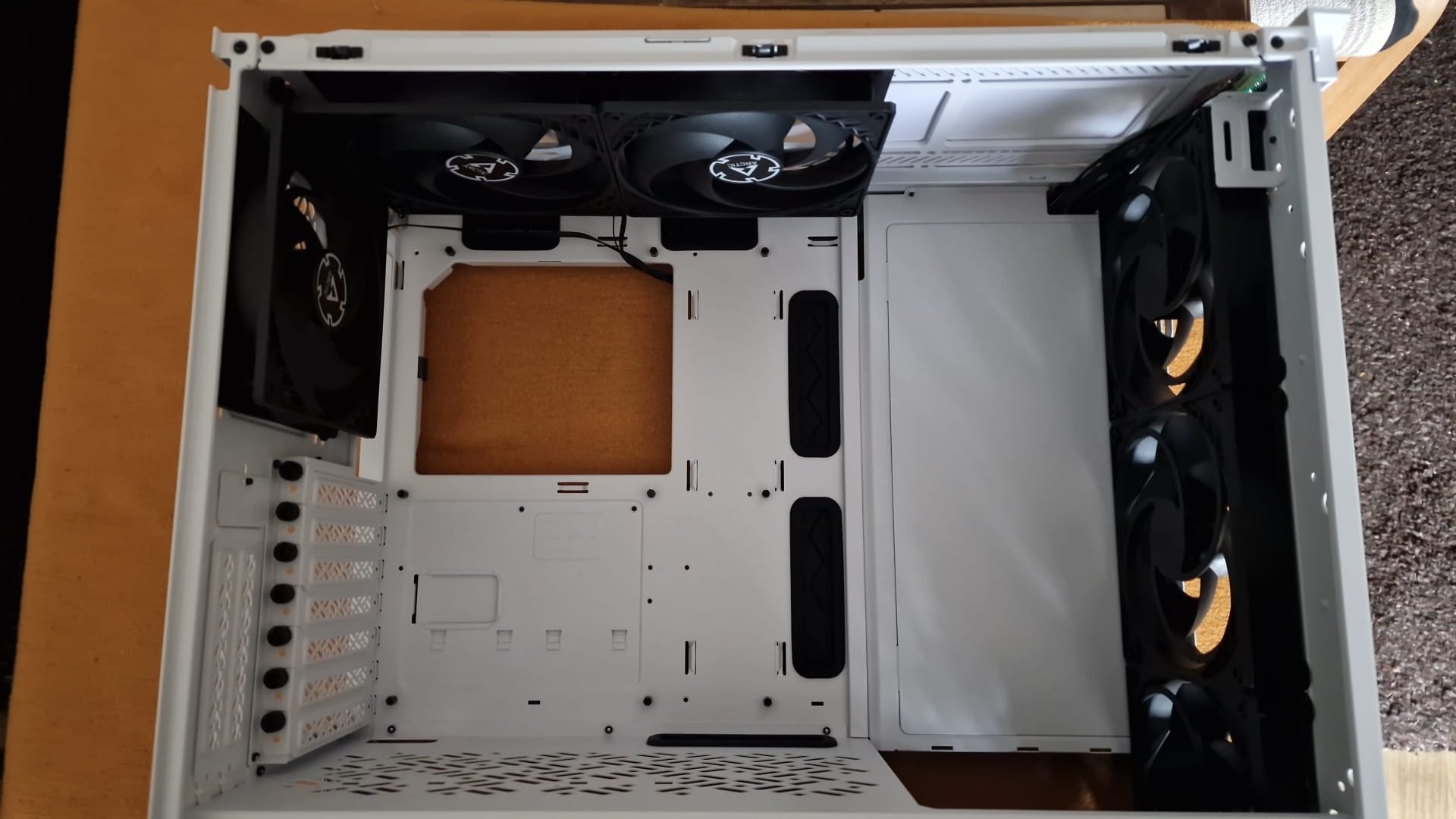 Danke für den Link, werd mir das Gehäuse anschauen. Da ich noch immer Rücken habe, werde ich vermutlich auch heute keine Bilder vom aktuellen innenleben meines Gehäuses machen können.