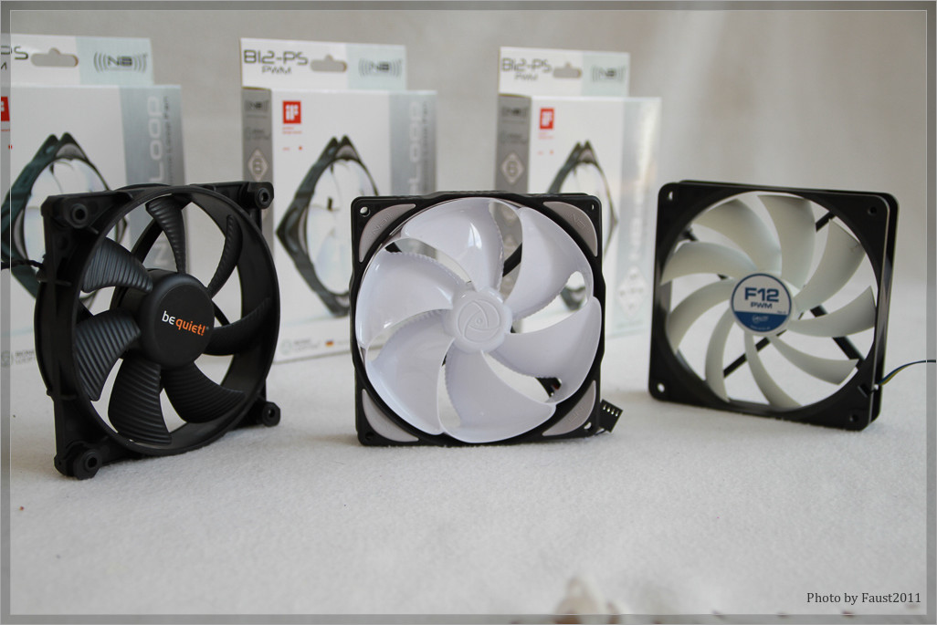 Für eine nähere Betrachtung verbleiben neben dem Testkandidaten „eLoop B12-PS“ (im Folgenden als B12 bezeichnet) somit der Arctic F12 PWM sowie der „Silent Wings 2“ von be quiet! (im Folgenden als SW2 bezeichnet).