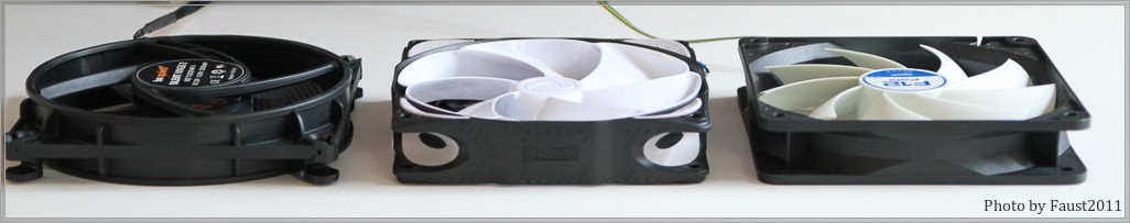 Die von mir genannten Lüfter entstammen völlig unterschiedlichen Preisbereichen. Das fängt bei ca. 4€ für den Arctic F12 an und reicht bis knapp 20€ für die Silent Wings 2 (welche inzwischen durch die Silent Wings 3 ersetzt wurden) als auch für die Noiseblocker eLoops Serie. Ich möchte mit meinem Vergleich dieser unterschiedlichen Lüfter hier lediglich aufzeigen, wie stark sich die Konstruktionen unterscheiden und welche Auswirkungen dies auf die Geräuschentwicklung hat.