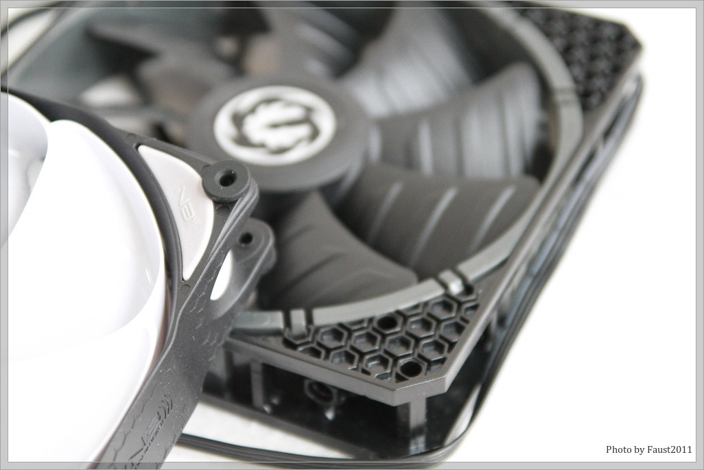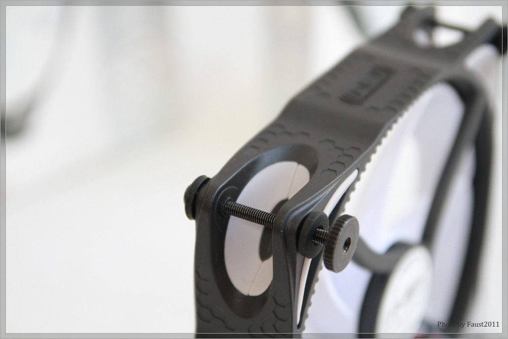 Der „Bitfenix Spectre Pro PWM“ weist eine interessante Art der Entkopplung innerhalb des Rahmens auf: