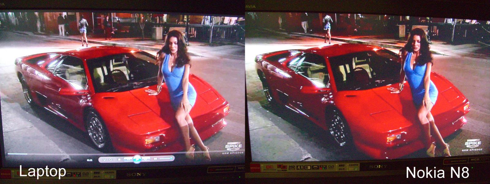 Das N8 scheint den Kontrast anzuheben um das Bild knackiger zu machen. Mein Fernseher tut dann noch mal das gleiche (dynamischer Kontrast, etc. ). Solche Features sollte man da besser abstellen, als ich mein TV in den PC-Modus (1:1 Wiedergabe) gestellt habe sah das Bild erheblich besser (im Ergebnis richtig klasse) aus. Das Rauschen als Folge der Übersättigung ging weg und Details kamen wieder. Eine Farbsteuerung am N8 wie an einem PC wäre natürlich ein Feature das Nokia noch nachreichen könnte.