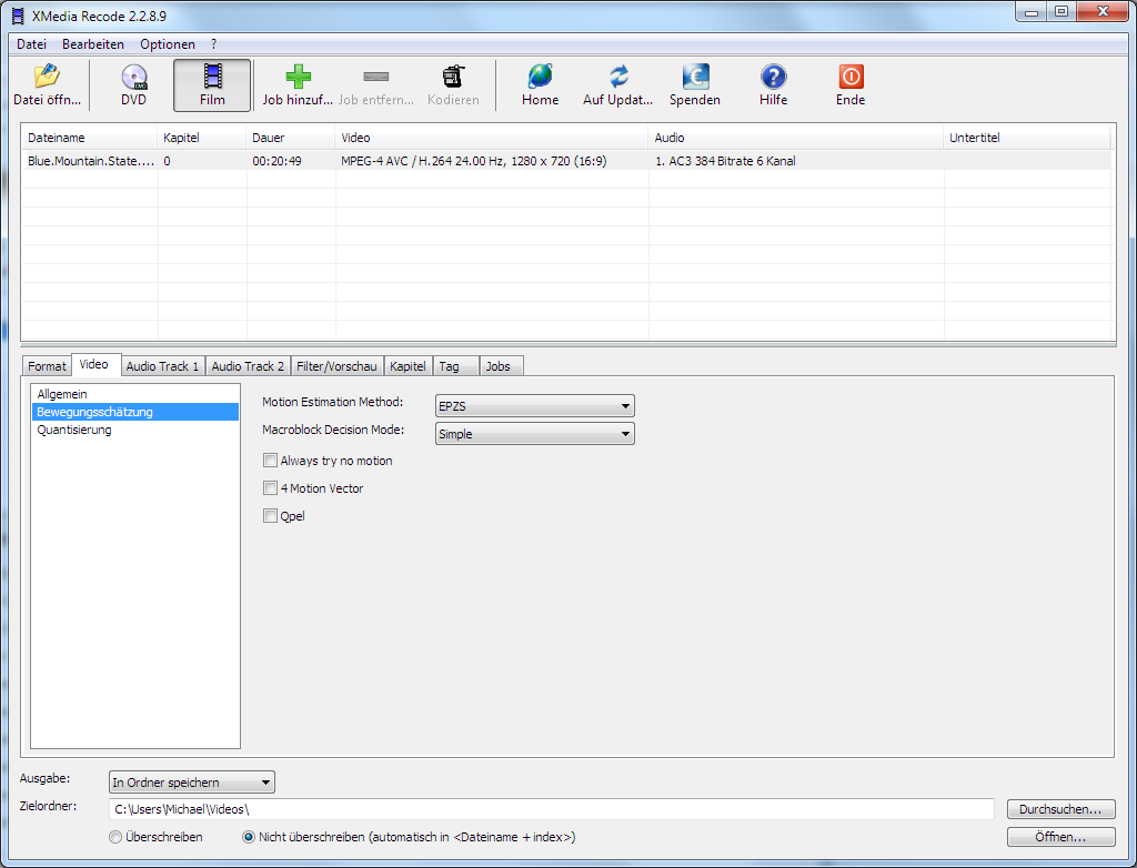 1 Pass benutzen (2 pass bringt nicht wirklich etwas dauert aber doppelt so lang)