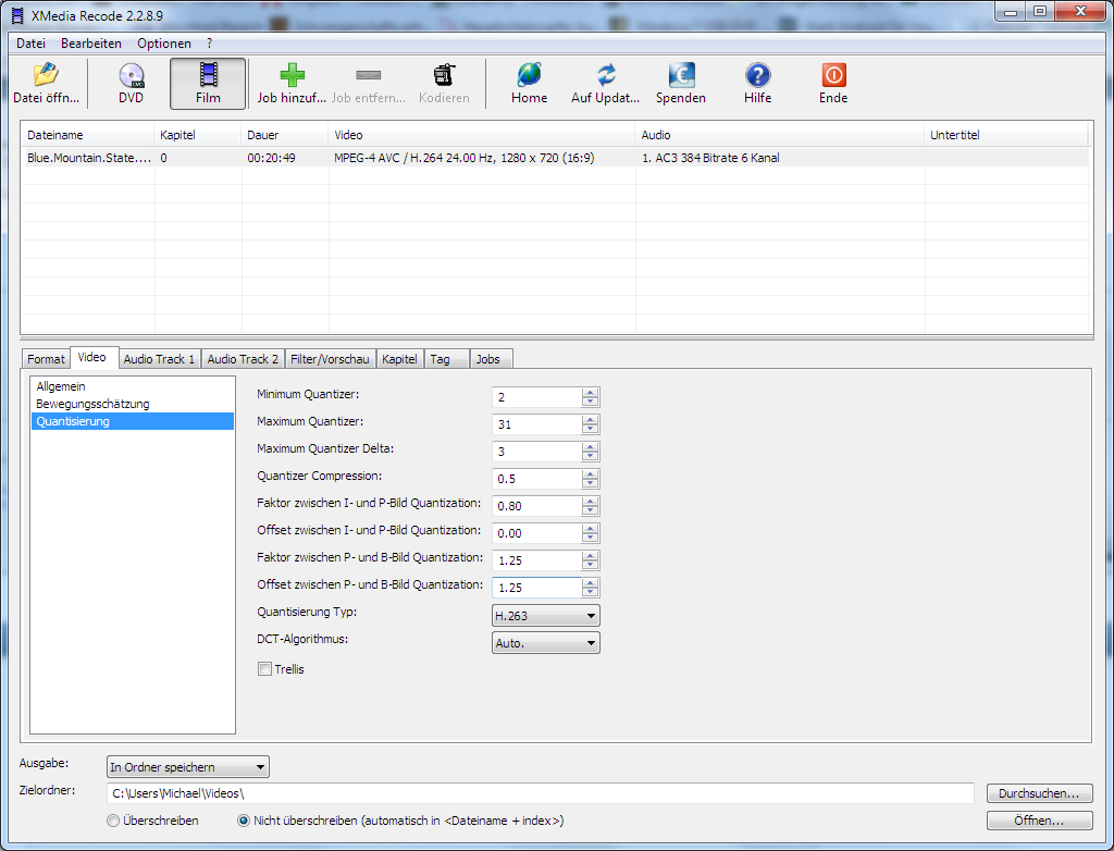 Konstante Quantisierung erzeugt die absolut beste Qualität, aber auch riesen Dateien, da der Regler für die Qualität nicht geht und immer 100% genommen wird (600mb / 3min)