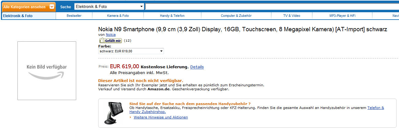 - Zur News: Nokia N9 bei Amazon.de gelistet