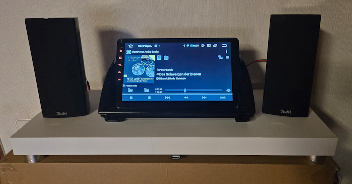 Hehe da sowas bisher bei und gefehlt hat hab ich mal ne Billig Mini Hifi Anlage gebastelt aus einem Android Autoradio das über war.