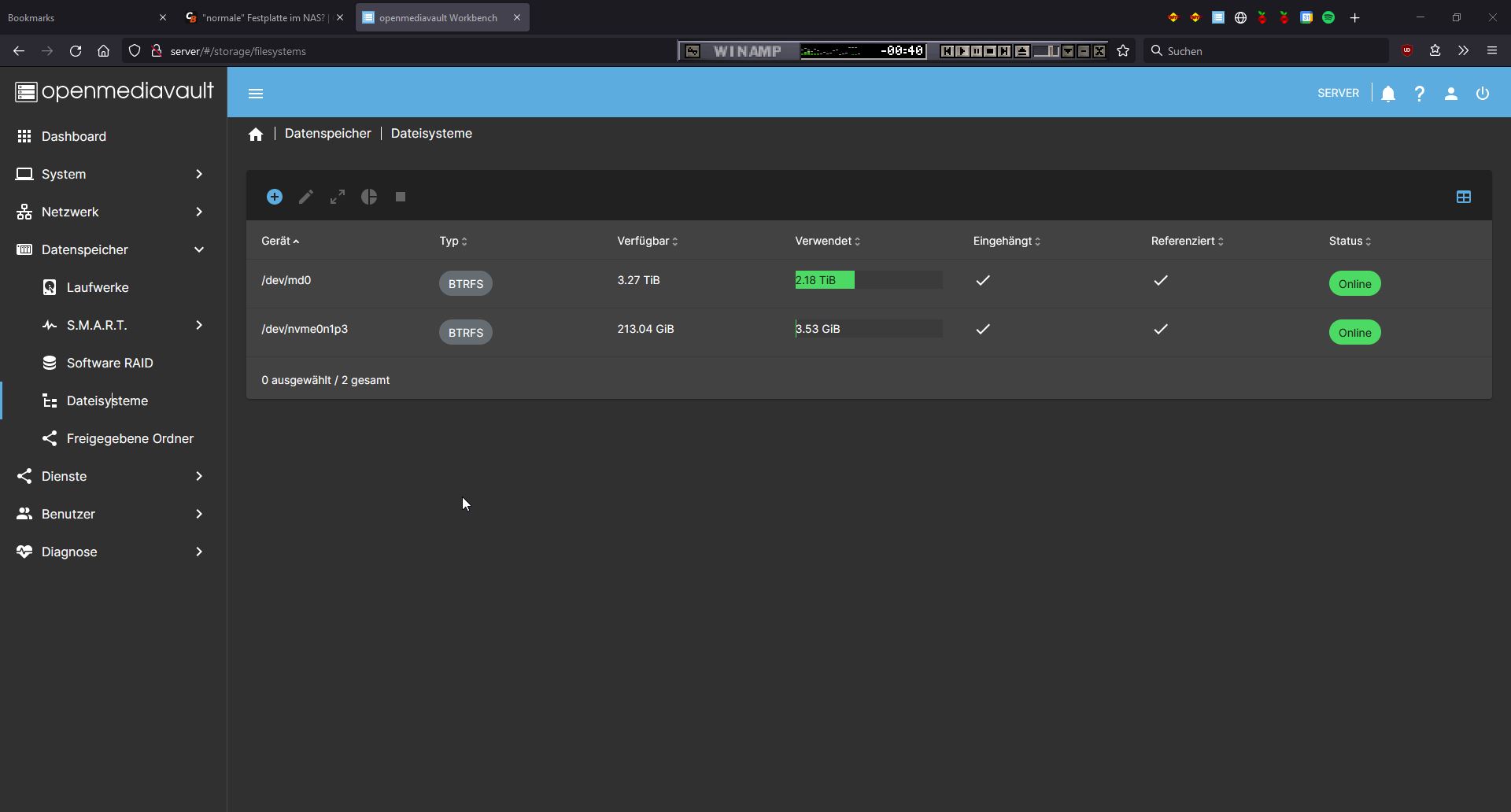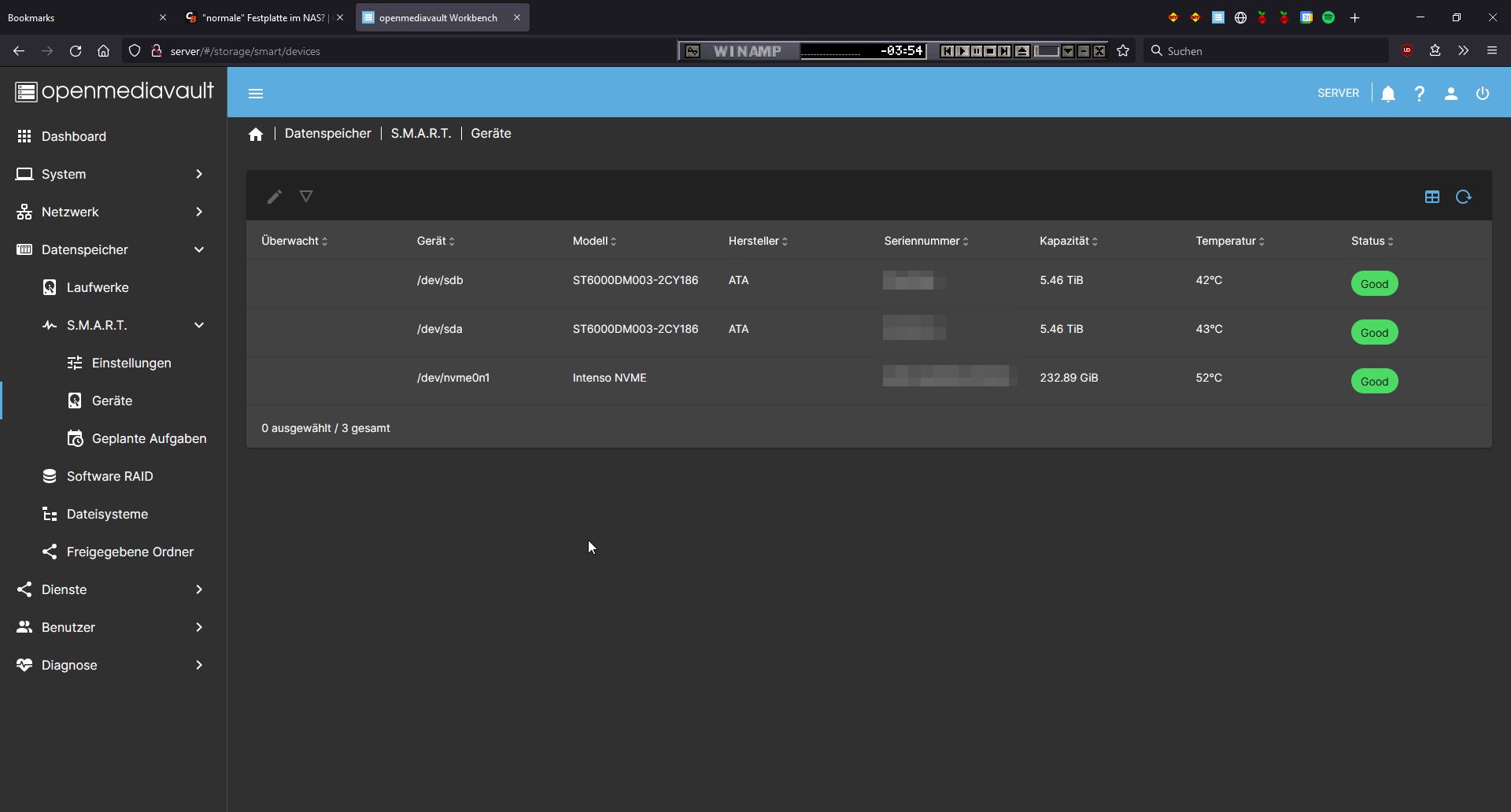 Aktuell läuft es auf 2 WD Red+ als einzelne Volumen, aber der Speicher wird knapp und eigentlich sind mir die Reds zu teuer.