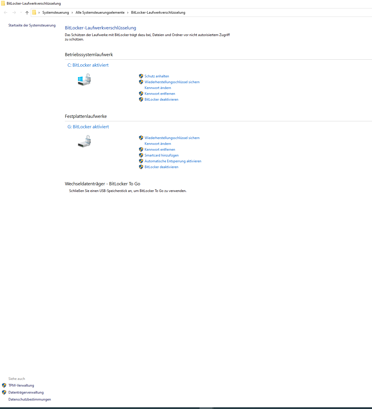 ich konnte die beiden SSD mit bitlocker verschlüsseln , aber die anderen 2 werden mir nicht angeboten zu verschlüsseln . siehe :