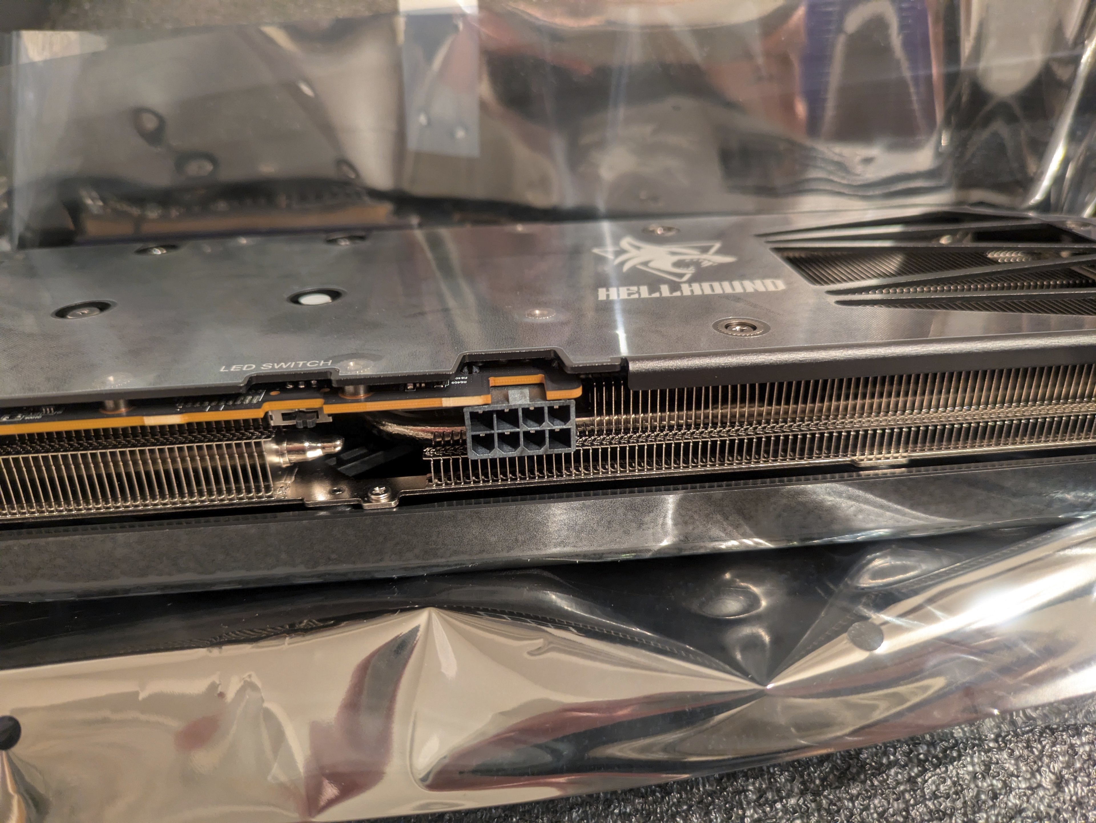 Am Netzteil ist ein 12V-2x6 Anschluss und ein PCIe. Kabel zur Auswahl sind