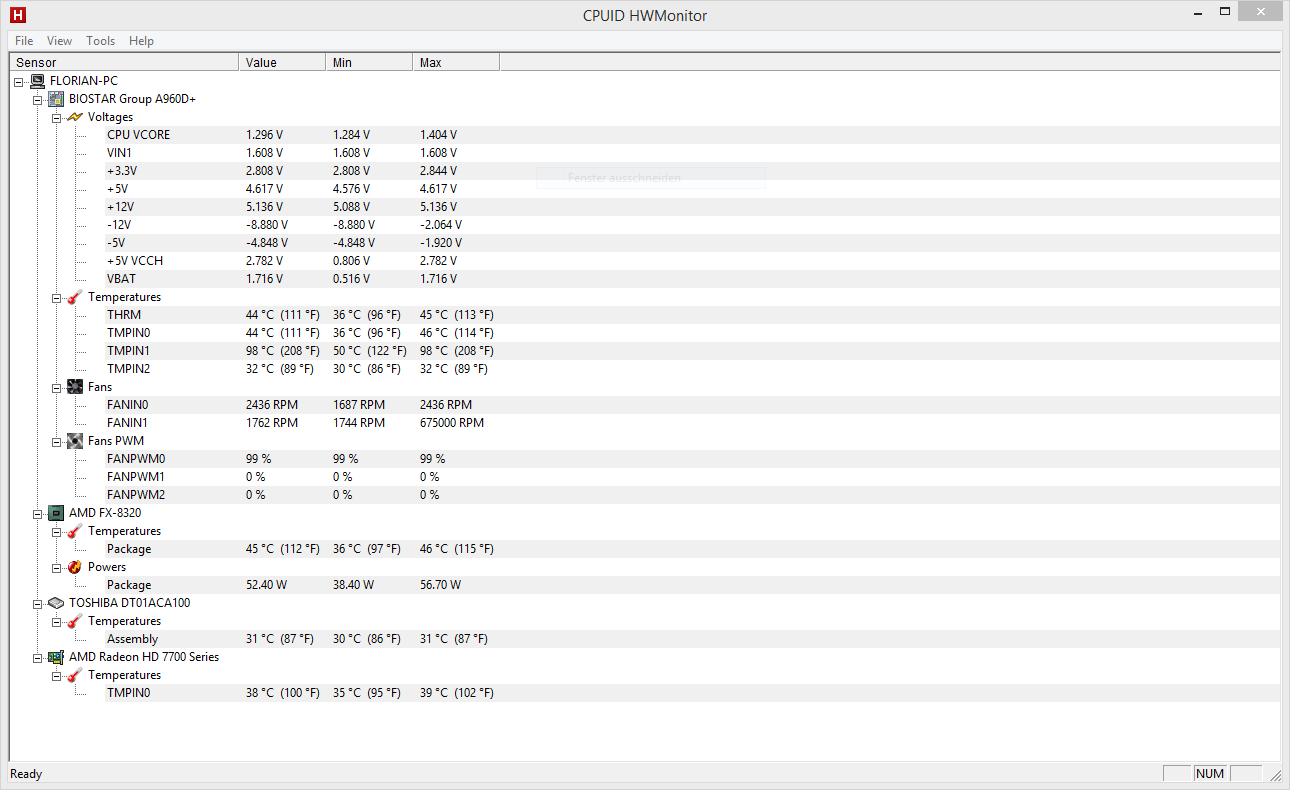 Jo der Screenshot war unter prime. Also totale Vollast. Ich hab einfach mal zum Spaß meinen gehäuselüfter an die NB gehalten und es stabilisierte sich bei 90 grad. Trotzdem für meinen Geschmack zu hoch. Was die CPU angeht sind die Werte eigentlich gut, würde zumindest ich sagen.