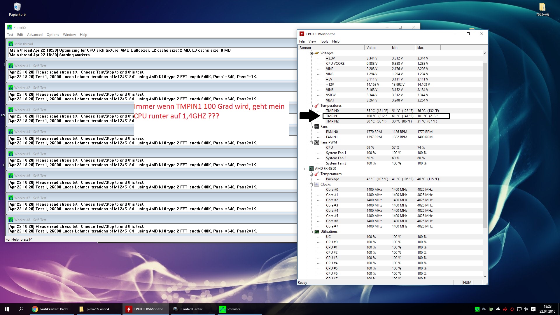 Das Problem ist unter Prime95 wird mein Northbridge Temp sehr hoch ca. 100grad, deshalb wird dann mein CPU runtergetaktet.