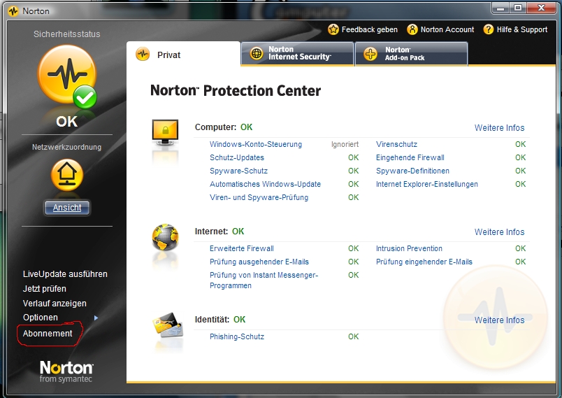 Es kam auch nicht -wie beim ersten Laptop - die Option, einen Norton Account einzugeben, meiner Ansicht nach ist auch gar keine Registrierung erfolgt.